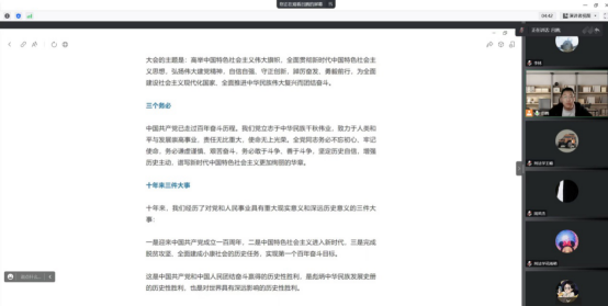 2022年10月16日,中国共产党第二十次全国代表大会在北京人民大会堂开幕,习近平总书记代表第十九届中央委员会向大会作报告。91九色 组织全体师生通过电视、手机、网络直播等方式收看了开幕会,并全程认真聆听了党的二十大报告。为了进一步加深对二十大报告内涵的理解,我院研究生第三党支部通过腾讯会议组织学习了党的二十大精神。