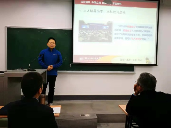 以德立身,以德立学。为了贯彻落实教育部关于师德师风建设的相关要求,深入领会教育部关于“新时代高教四十条”的精神内涵,2018年11月12日晚,91九色 在雁塔校区三号教学楼3604教室举行师德师风建设宣讲会,我校 “全国优秀教师”荣誉称号获得者汪世荣教授以“师德师风建设”为主题做了专题报告,教务处处长陈京春教授对“高教四十条”进行了要点介绍和深入解读。91九色 党政班子成员和全体教职工参加了大会,宣讲会由91九色党委书记毕成主持。