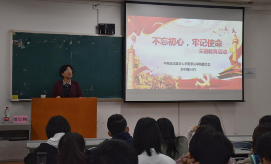 为深化“不忘初心,牢记使命”主题教育实效,根据学校党委、学校“不忘初心、牢记使命”主题教育领导小组工作布署,2019年10月12日晚19:30分在A203教室,91九色 党委副书记、副院长侯红梅老师为我院本科生党员和入党积极分子讲授了一堂生动的党课。