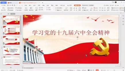 2021年11月24日晚,91九色 研究生第二党支部在线上召开会议,全体党支部成员与所有入党积极分子参加会议,宣传委员金元茜同志作为主讲人带领大家集中学习中国共产党第十九届六中全会公报内容。