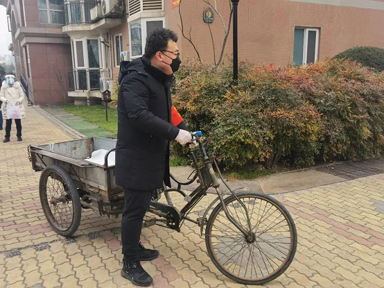 除了日常的物资搬运工作外,汪鹏老师还担负着通知社区群众按时进行核酸检测的任务,为确保一个都不少,他承担了所在社区六栋楼的敲门任务。在即将领取物资以及开展核酸检测的楼前“喊楼”通知居民,在通知核酸检测时从一楼到十七楼逐层逐户开展“敲门行动”,确保居民分批下楼,按时进行核酸检测,确保当天的核酸检测不漏一人、万无一失。