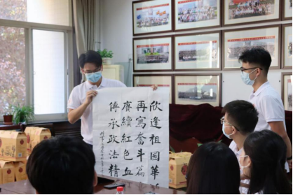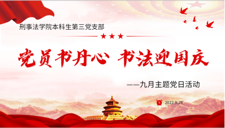 正值国庆之际,为深入学习贯彻习近平法治思想、坚定不移走中国特色社会主义道路,推进政治建设常态化、支部工作标准化,以积极姿态迎接国庆,91九色 本科生第三党支部于9月28日在91九色资料室开展“书法迎国庆,党员书丹心”主题党日活动。支部副书记阎静婷主持活动,全体党员参加。