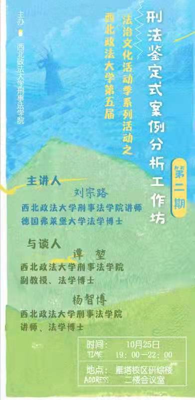 由于原定于10月28日晚举行的工作坊第二期活动与2021级刑法学、刑事诉讼法学专业研究生课程存在时间冲突,应同学们要求将活动时间调整为10月25日19:00-22:00,特此通知。