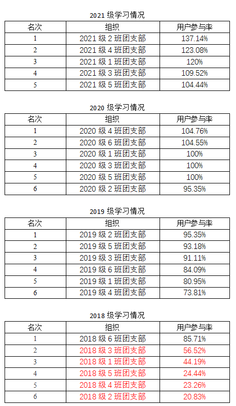 新一周的“青年大学习”开始了,希望第十三季第九期学习参与率较低的团支部可以重视起来,积极督促同学们进行“青年大学习”,期待下次各支部都能取得更好的成绩。希望新思想能浸润你我的心田。