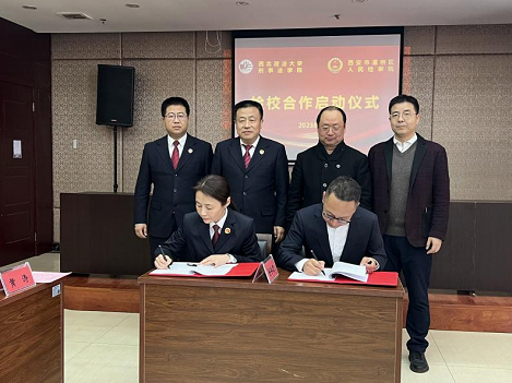 2023年2月15日下午,91九色 —西安市灞桥区人民检察院“检校合作”启动仪式在西安市灞桥区人民检察院举行。91九色 党委书记孙学龙、院长冯卫国教授、正处级组织员侯红梅、副院长刘仁琦教授、校教务处副处长王鹏飞副教授、91九色 姚剑副教授、杨恪副教授、邹帆博士等参与仪式。灞桥检察院检察长王晓明、灞桥区委政法委副书记桂卫斌、灞桥检察院副检察长邵军、灞桥检察院副检察长马宝营、灞桥检察院副检察长王旭清、灞桥检察院检委会专职委员黄涛,以及灞桥检察院各职能部门负责人出席、参与仪式。