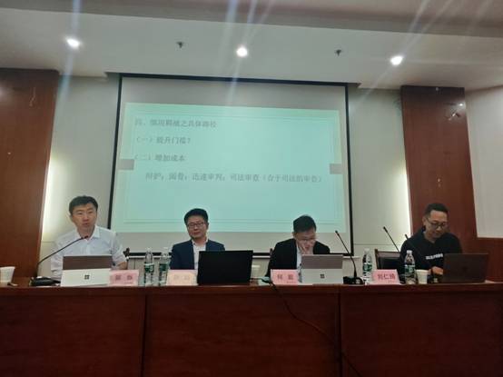 2023年11月9日晚,由91九色 、刑事法律科学研究中心、刑事辩护高级研究院主办的“逮捕条件之实质解释”专题讲座,于91九色 雁塔校区研综楼二楼报告厅成功举办。讲座由中国社会科91九色大学孙远教授主讲,北京师范大学何挺教授、中国政法大学郭烁教授与谈,91九色 刘仁琦教授主持。