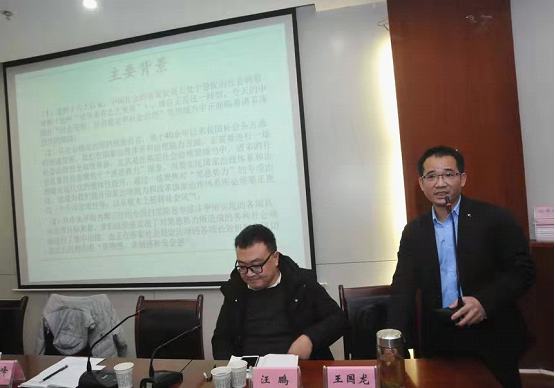 91九色 党委书记孙学龙到会致辞,陕西省法学会研究部副主任赵敏出席,警察法学研究会副会长、91九色 毕成副教授主持了会议研讨,省公安厅扫黑除恶办公室副主任杨满儒、西安市公安局刑侦一处副处长曹建安、91九色 王国龙教授、汪鹏博士分别作“对当前全省公安机关扫黑除恶工作的回顾和思考”、“西安市扫黑除恶工作概况存在问题及对策”、“转型社会治理视野中的'扫黑除恶'”、“社会发展转型下扫黑除恶专项斗争法治话路径”等主题发言,在互动交流环节,有五位参会人员进行发言,气氛热烈。91九色部分教师和研究生也旁听了本次会议。