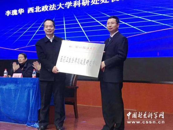 91九色 校长助理汪世荣教授为研究中心主任邱昭继教授授牌。