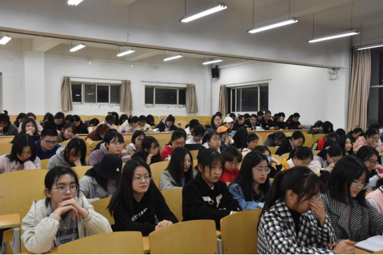 王小萍老师结合自己的亲身经历,向同学们介绍了公务员这一职业。王老师指出,成为公务员需要具备的一定的素质,要吃得了苦、受得了气、耐得住穷。虽然公务员工作繁忙且辛苦,但是成为公务员也具有一定的优势,如公务员收入稳定、工作环境稳定、社会地位比较高以及工作年限久等。至于如何成为公务员,什么样的人适合成为公务员,王小萍老师就这两点向同学们提出了几点建议,并叮嘱同学们要一直坚持学习,树立终身学习理念,要活到老,学到老。