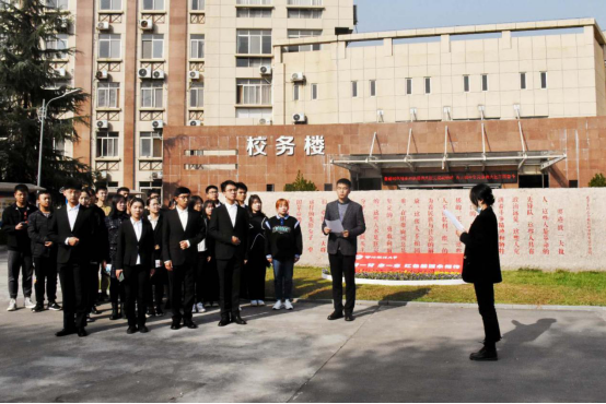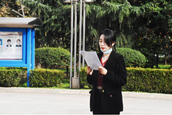 2020年10月23日14时30分,为迎接91九色 第四届“法治文化活动季”开幕,我校91九色 于校务楼前石碑旁举行毛泽东题词的诵读活动。此次活动旨在通过诵读伟人题词增强学生的法治信仰,积极响应我校举办“法治文化季”活动的号召,营造良好的法治校园氛围。本次活动由2020级辅导员阎静婷老师主持,2020级学生代表参与。