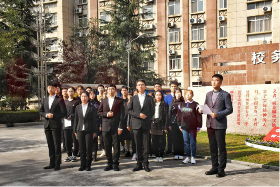 活动正式开始前,全体成员在雕刻着毛泽东同志为我校前身陕北公学题词的石碑旁合影留念,学生代表们个个饱含热情地宣读题词:“要造就一大批人,这些人是革命的先锋队。这些人具有政治远见。这些人充满着斗争精神和牺牲精神。这些人是胸怀坦白的,忠诚的,积极的,正直的。这些人不谋私利,唯一的为着民族与社会的解放。这些人不怕困难,在困难面前总是坚定的,勇敢向前的。这些人不是狂妄分子,也不是风头主义者,而是脚踏实地富于实际精神的人们。中国要有一大群这样的先锋分子,中国革命的任务就能够顺利的解决。”