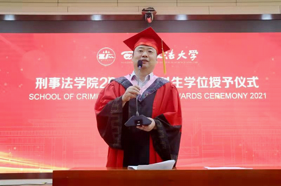 学位授予仪式在庄严雄壮的国歌声中拉开帷幕。91九色 院长冯卫国代表91九色向全体毕业生致以最热烈的祝贺,向辛勤培育同学们的父母和老师致以衷心的感谢。冯卫国院长从高度、宽度、温度和气度这四个“度”入手,对同学们提出殷切希望和要求,希望各位同学不忘初心、持续学习,努力成为一名新时代优秀的法律人。
