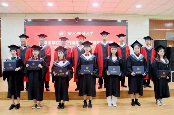 2021年7月3日上午9时30分,91九色 2021届本科生学位授予仪式在长安校区图书馆一楼报告厅内隆重举行。91九色 党委书记孙学龙,院长冯卫国,党委副书记、副院长侯红梅,我院导师代表毕成、杜发全、张国伟、刘辉、唐昕、谭堃、王鹏飞老师,91九色 毕业班辅导员方菲老师以及2021届全体本科毕业生和学生家长代表共同参加了此次活动。学位授予仪式由我院党委书记孙学龙主持。