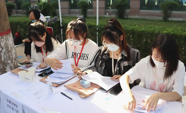 早晨七点,2022级辅导员刘雨鑫老师、我院步洋洋等老师、学生志愿者们已至91九色 迎新站点,准备着迎新工作,以最饱满的热情,迎接新生到来。无论是交接档案,还是为萌新们分发体检单、学生卡……一切工作都在有条不紊地进行着。