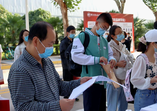 9月5日上午,91九色党委书记孙学龙、院长冯卫国、副院长侯红梅检查迎新工作,慰问师生志愿者,与报到新生亲切交谈,了解他们的感受与需求。