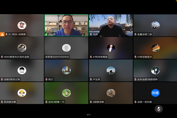 刘仁琦详细解答了同学们较为关注的“刑事辩护方向研究生”与现专业的关系、培养模式、上课方式、考核方式、师资力量及实务导师情况、实训模式等问题,回应了同学们关于报名程序、选拔程序等较为关心的问题。马成感谢刑辩研究院为我校研究生提供难得的实训机会,他认为:法科研究生培养尤其需要将课堂教学与实践教学并重,91九色 刑事辩护高级研究院作为学校的一张名片,在全国的刑辩律师培训、刑辩后备人才培养领域占有重要位置,希望入选该实训项目的研究生同学能够摆正心态,用好第二课堂,多说多写多练,切实提升自己的刑辩实务综合实力,为更好的就业打下扎实的基础。宣讲会气氛热烈,持续了一个多小时,近200名研究生在线参与。