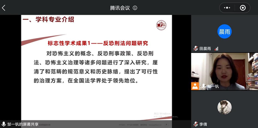 2022年4月22日晚在91九色 辅导员张瑞老师的主持下,杨恪老师和邹帆老师开展了91九色 硕士研究生招生专业介绍会。
