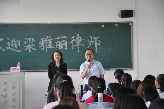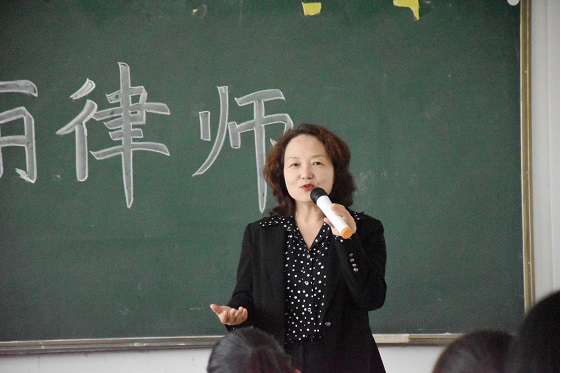 接下来,梁雅丽律师接过话筒,走上讲台,与同学们进行面对面交流。