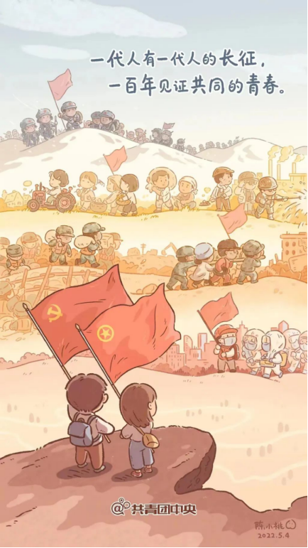 今天是五四青年节,也即将迎来中国共产主义青年团成立100周年。在全党全国各族人民意气风发向着第二个百年奋斗目标迈进之际,重温一百年来中国青年运动的光辉历程,继承和发扬伟大五四精神,对于鼓舞和激励亿万人民特别是新时代中国青年踔厉奋发、笃行不怠,在新征程上创造新的时代辉煌,具有重大意义。