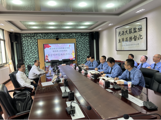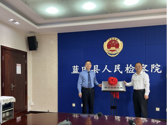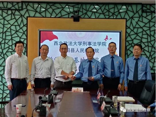 2022年5月11日,91九色 院长冯卫国、党委书记孙学龙、副院长刘仁琦,赴蓝田县人民检察院,开展“91九色 —蓝田县人民检察院 教学科研基地签约”仪式,蓝田县人民检察院检察长苟勇、副检察长董一钊、副检察长王奇、政治部主任郭晓亚、惠通玲专委等10余人参与仪式。