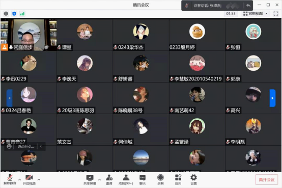 特殊开学,全新开始。对于2021级的同学们而言,线上教学开启新的一学期显得很重要。面对新课程,同学们难免会有陌生感,再加上线上授课方式的非直面性,我不能即时观测到同学们的状态。这意味着同学们需要提高提高学习的自律性和主动性。同时我也顺应线上教学的特点,尽可能地从各方面细节出发,为保障教学良好、有效开展作了充分的准备和完善。新学期的课程以腾讯会议的形式给同学们授课,课前准备充分、学习氛围营造良好,如此下来,我相信授课听课的体验、成果可能不会比线下教学差。