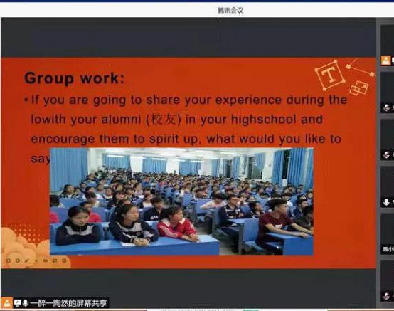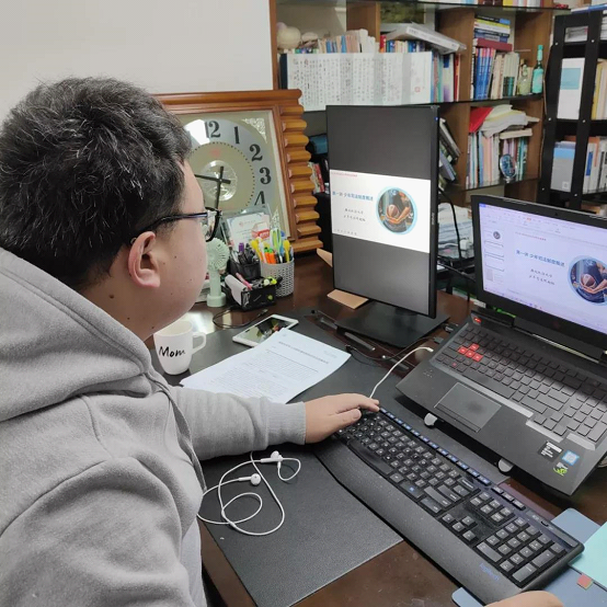线上教学,需要在一定程度上转变教学观念。备课时需要结合学情对授课进行更加详细的补充。让同学们带着任务学习,教会他们充分利用网络资源辅助和强化学习。上课时,由于线上授课的虚拟化和个体的差异化,同学们容易迟到,因此需要明确课堂要求,并在课前10-15分钟进行提醒。要增强上课的仪式感,比如我会在课前播放一段音乐,在等待上课的同时,调整同学们的上课状态。此外,上课时要根据课堂内容,加强与同学们的互动,利用腾讯会议的“留言板”、“举手”、“在线语音交流”等功能,促进同学们对所学知识的吸收、深化。总之,线上教学固然会因网络网速等问题产生一定局限性,但它能够促进同学们与老师的沟通交流,及时反馈出课堂疑问,是一种高效务实的教学方式。