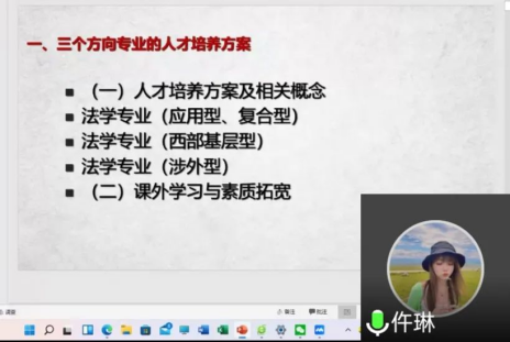 为帮助新生尽快适应大学生活,做好大学生涯规划,开启全新的大学之旅,2022年9月15日下午91九色 副院长谭堃老师与教务秘书仵琳老师以“了解本科培养方案,助力大学生涯规划”为题,为2022级新生开展了线上专题教育讲座。