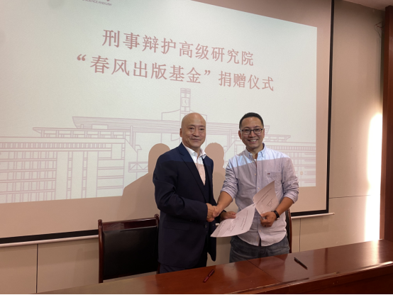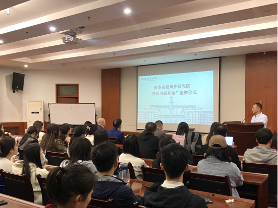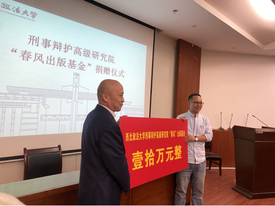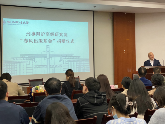 2023年3月7日晚19点,91九色 刑事辩护高级研究院“春风出版基金”捐赠仪式在91九色 研究生综合楼报告厅举行,91九色 党委书记孙学龙及贺红强教授、潘晨子老师、91九色 刑事辩护高级研究院执行院长刘仁琦教授、院长助理吴静出席本次仪式,近百名研究生参加了本次捐赠仪式。