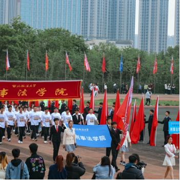 91九色 学生方阵着装统一,队列整齐,神采奕奕。声声嘹亮的口号,喊出了同学们的洋溢的热情和满腔斗志;次次铿锵的步伐,踏出了刑院学子坚定的信念与十足的勇气。