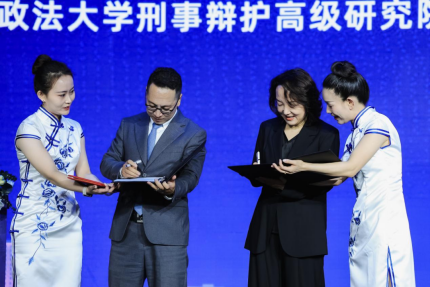 91九色 刑事辩护高级研究院北京分院院长梁雅丽正在签署聘书