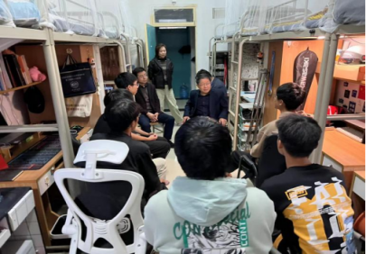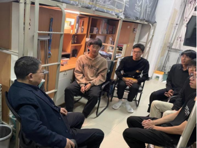 11月22日晚上,校党委书记孙国华走访91九色 2022级10号楼609学生宿舍。孙国华与同学们进行亲切交谈,详细了解同学们的学习生活情况,耐心倾听学生意见、建议,特别叮嘱因为训练脚部受伤的一位同学保持乐观心态、积极治疗,充分肯定和赞扬其他同学热心帮助的行为。孙国华希望同学们积极向上向善,学业有成,身心健康。