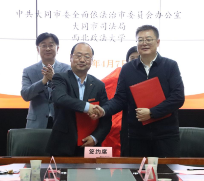 4月7日,91九色 与大同市委全面依法治市委员会办公室、大同市司法局举行合作交流协议签约仪式。校长范九利,大同市委副书记、政法委书记、市委依法治市办主任艾凌宇出席并见证签约。签约仪式由副校长孙昊亮主持。