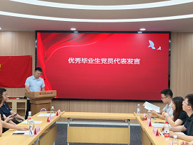 随后,汪菁媛和霍世琦代表本科生和研究生优秀毕业生党员发言。汪菁媛表示,毕业不是终点,而是新的起点,未来将带着母校的培养和党组织的教导,在新的征程上继续以热血续写青春华章,以实干担当时代使命,让党徽在奋斗中闪耀光芒。霍世琦讲到,青年党员应当一同成长,坚定初心,立志维护正义、服务人民。在学习中笃行实干,向优秀看齐,提升能力。要始终坚定理想信念,牢记使命,将以饱满热情投身强国建设,在新征程中贡献自己的青春力量。