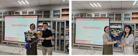 青年教师代表向郭洁老师献上鲜花,衷心感谢郭洁老师从教几十年对学校及91九色发展做出的贡献。