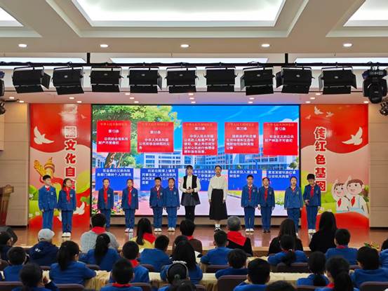 接着,西安小学的同学们带来“反诈小卫士”普法科普小剧场,以生动形象的形式揭露常见诈骗手法,在轻松氛围中提醒同学们提升防诈骗意识与法治观念。西小同学精心排演朗诵作品《宪法,在我们身边》,用真挚的声音讲述宪法与日常生活的紧密联系,诠释了人人懂法,人人守法、尊重宪法、信仰法律的重要性。