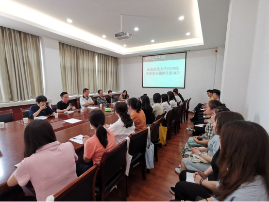 会上,闫晓君教授从学科建设、师资力量、研究特色、学科优势等方面介绍了法律史学科的基本情况。汪世荣教授、陈玺教授、刘全娥教授、吕虹副教授、任亚爱副教授等勉励同学们尽快调整心态,适应新的学习生活,珍惜时光,勤奋上进,培养问题意识,主动和老师、同学沟通学习生活中遇到的问题,并就为人处世、学业规划、专业实训、论文写作、职业选择、调查研究、兴趣培养等向同学们分享了自己的经验。研究生新生也各自就自己的学习经历、家乡特色、研究兴趣等进行了自我介绍。