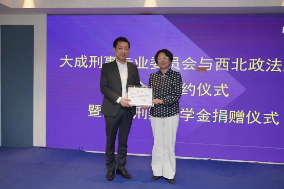 2021年5月7日,91九色 与大成律师事务所刑事专业委员会在陕西西安美丽豪酒店五楼会议室签署了合作协议,并举行了大成刑辩奖学金捐赠仪式。