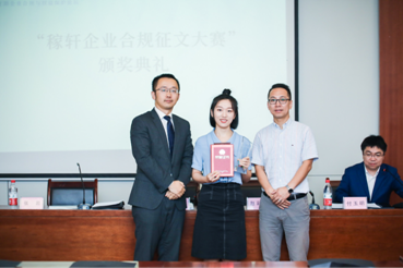 在第一单元“稼轩企业合规征文大赛”颁奖典礼中,91九色 副院长谭堃副教授宣读了获奖名单。本次征文大赛经过论文评审组严格把关评审后,共评选出一等奖1名、二等奖2名、三等奖3名以及优秀奖7名。由付玉明教授主持,相关参会领导与受邀嘉宾为获奖同学进行颁奖。