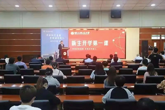 杨宗科校长以《中国共产党探索法治道路的百年历程》为题,结合学校专业特点给新生讲授开学第一课。杨宗科校长总结了中国近代以来法治实践的艰辛历程,阐述了中国共产党如何从中国革命、建设、改革的实践中探索适合中国国情的法治道路,讲述了党的十八大以来建设法治中国发生的历史性变革和取得的历史性成就,阐释了中国特色社会主义法治道路的基本特征、主要内涵、基本经验等,最后明晰了91九色 作为一所红色基因浓厚的政法院校的历史责任。杨宗科校长希望全体新生能够弘扬陕北公学和“老延大”优良传统,做探索中国特色社会主义法治道路的先锋队、突击手、排头兵,成为担当民族复兴大任的时代新人,为传播法治信仰、建设法治中国贡献西法大的力量!