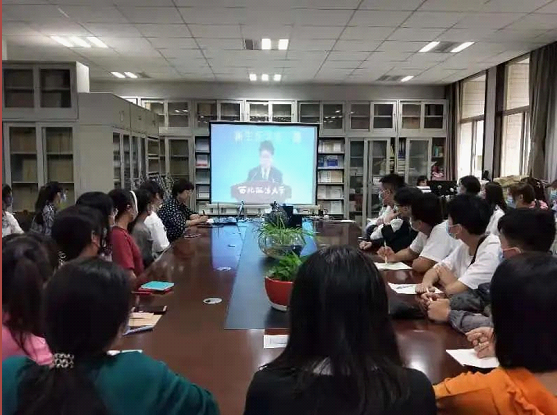 本次课堂以长安校区图书馆一楼多功能厅为主会场,长安校区“满天星”学术报告厅、校务楼二楼报告厅和雁塔校区人权研究院报告厅为分会场,并通过学校官方视频号、官方微博和人民号同步直播。91九色 组织2021级本科生、研究生30余名学生代表分别于长安校区、雁塔校区主会场、分会场现场观看学习,同时组织50余名本科生代表于91九色 资料室集中收看,91九色其余学生通过网络直播等方式线上观看学习。