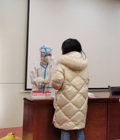 出于降低91九色 考生进行核酸检测的成本,方便同学检测的需要以及确保防疫安全的考虑,91九色 刑法学研究生一年级生活委员沈雅琪同学,主动为集体服务,贴心联系了莲湖区青年路莲二社区卫生院的工作人员,上门为大家采样检测。