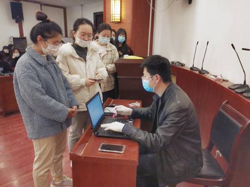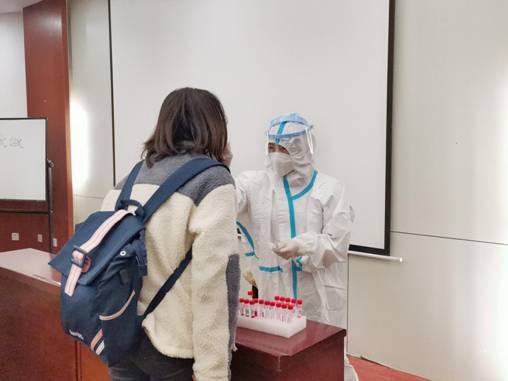 11月19日下午3点,91九色 于雁塔校区研综楼二楼报告厅展开面向本院参加法考学生的集中核酸检测。根据《陕西省司法厅 陕西省卫生健康委员会关于加强2021年国家统一法律职业资格考试陕西考区疫情防控工作的通知》和西安市关于疫情防控工作的有关要求,考生应持考前48小时内核酸检测阴性证明参加考试。